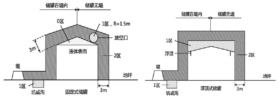 爆炸危险区域划分举例:【易燃物质重于空气,设在户外地坪上的储罐】